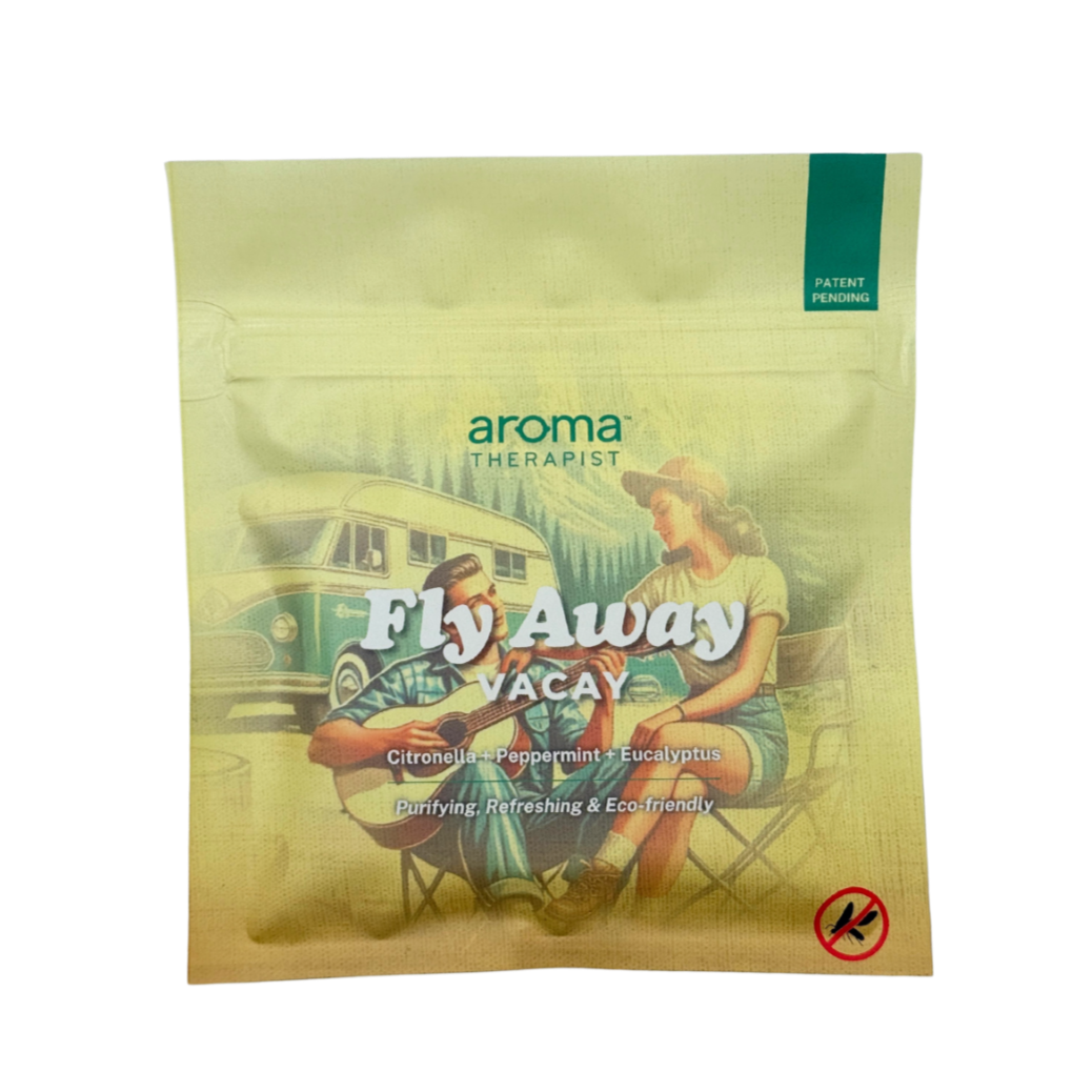Naturally and effectively repels mosquitoes, flies, and other pests. Perfect for your outdoor adventures. The earthy, lemongrass aroma of Citronella is often associated with outdoor freshness and summer nights. Peppermint’s refreshing essence creates a natural, cooling effect on the senses. Add the power of eucalyptus, and “Fly Away Vacay” delivers a purifying and invigorating scent.